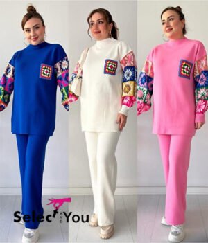 New luxury velvet finish nightwear fur sleeve sets