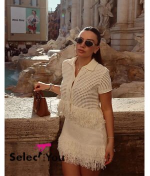 Houndstooth Drop Shoulder Tweed Jacket With Skirt