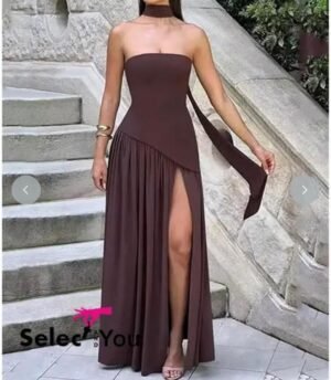 Black Strapless Two-Piece Rhinestone Mesh Maxi Dress