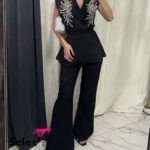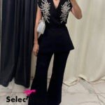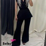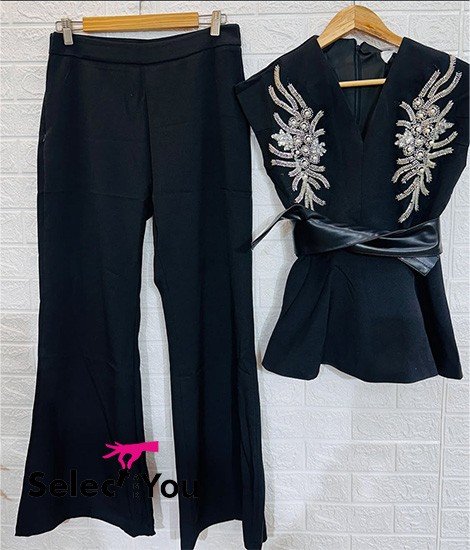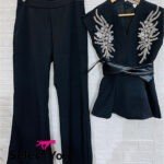 Ribbed Crossover Top & Striped Belted Paperbag Shorts