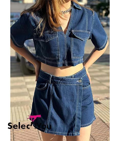 Boxy denim skorts and top