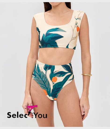 Snakeskin Tie Shoulder High Waisted Bikini Swimsuit