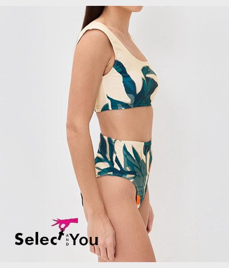 Tropical Bandeau Top With Frill Trim Bikini Set
