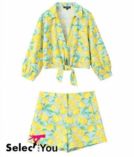 Women Vintage Wave Digital Print Casual Blouse Lady Hem Knotted Button Shirt Chic Blusas Flare Sleeve Chemise Top