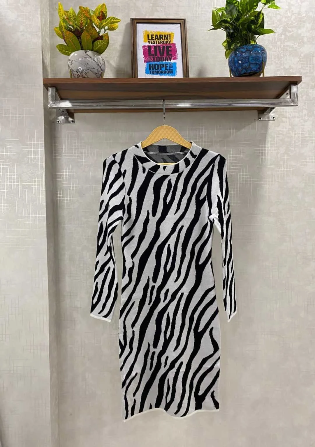 Zebra print sweater dress.